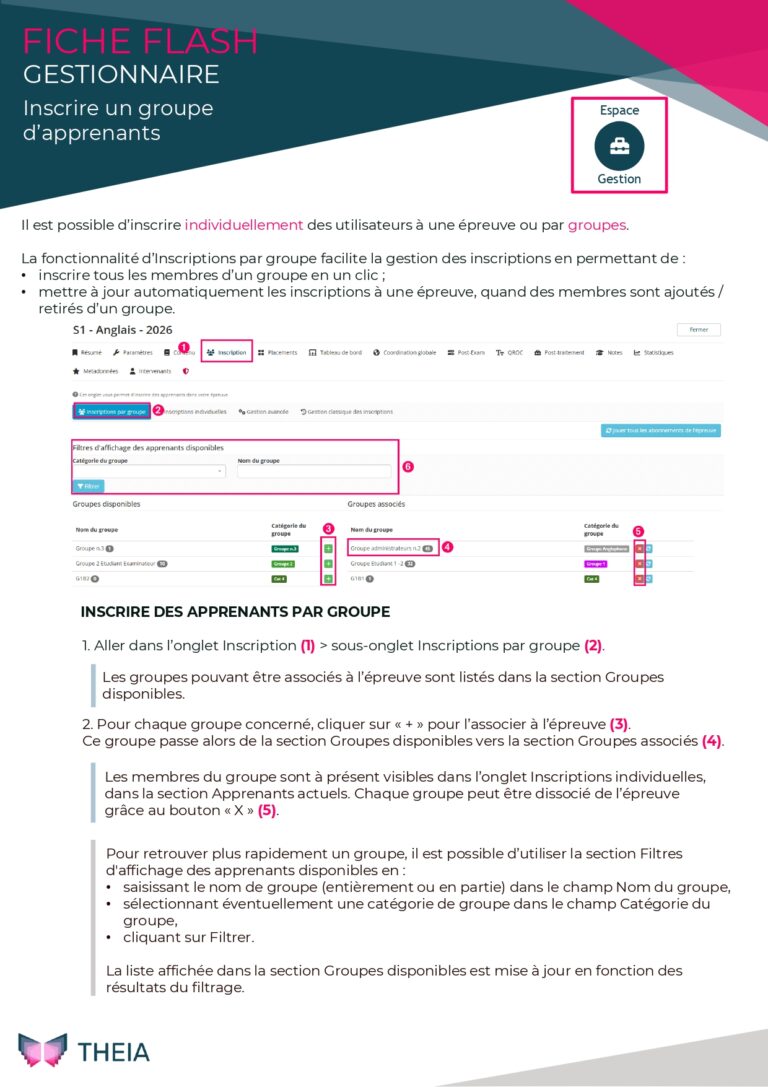 Voici une procédure en une page pour savoir comment inscrire des utilisateurs en groupe dans une épreuve. Cette fiche flash est la troisième partie de de la section « Créer une épreuve ».