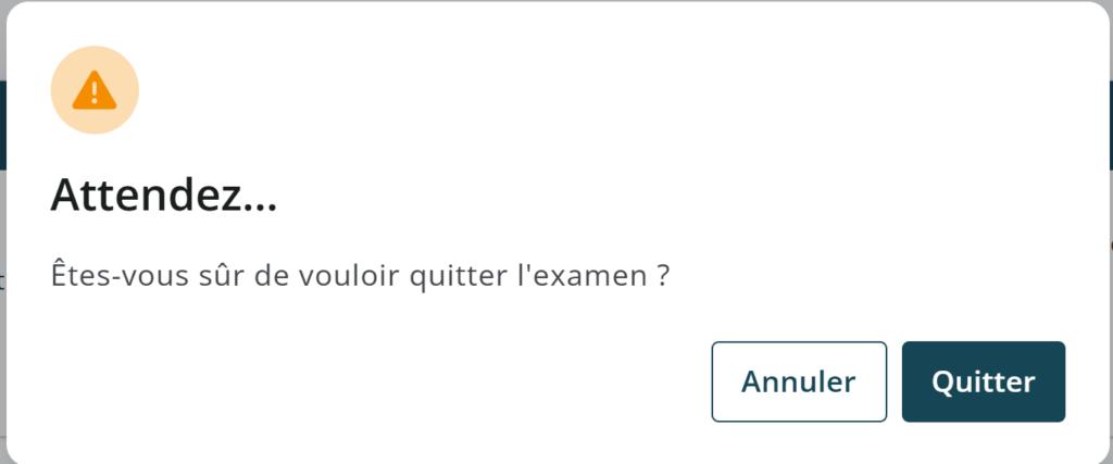 Si vous tentez de quitter l’épreuve sans la soumettre, le message suivant s’affichera
