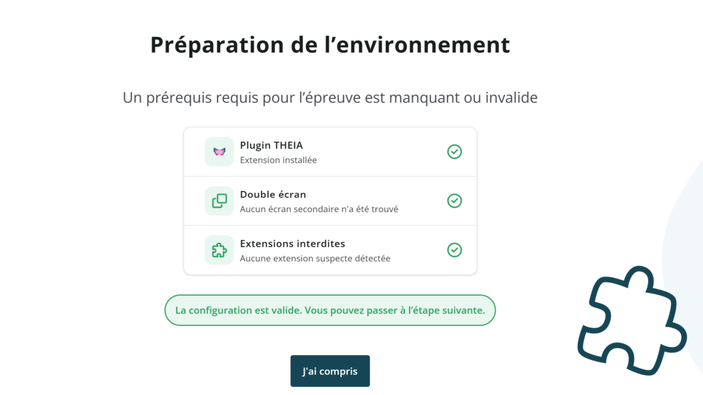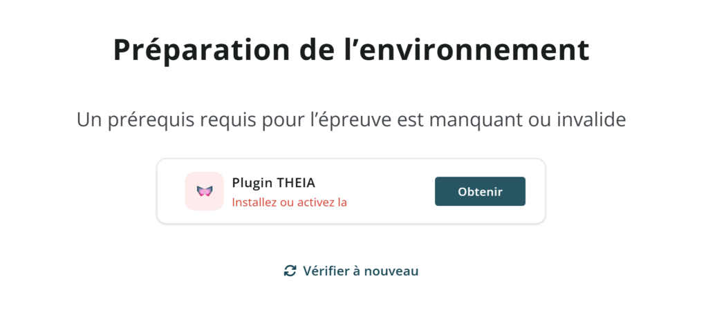 • Si le plugin n’est pas encore installé, une page dédiée vous guidera automatiquement lors de votre entrée dans l’examen.