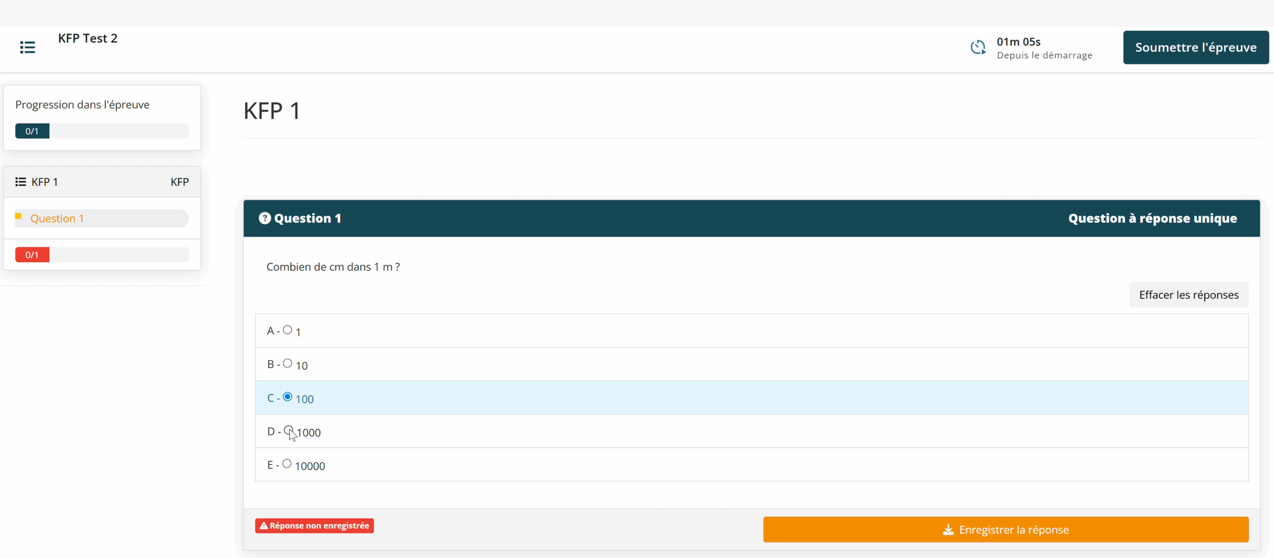 Pour jouer un KFP qui est intégré à un examen, rendez-vous dans l’onglet « Epreuves » de votre espace apprenant. et cliquez sur « Jouer l’épreuve ». Ici vous pouvez voir une question type QRP dans un KFP joué.