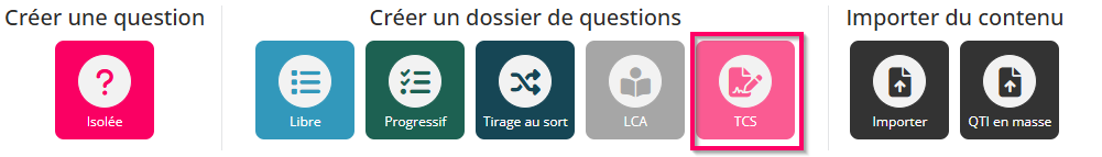 A noter : si les dossiers TCS n’apparaissent pas dans votre catalogue de questions, il est possible que cette option ne soit pas active sur votre plateforme. Si c’est le cas, n’hésitez pas à contacter le service support de THEIA.